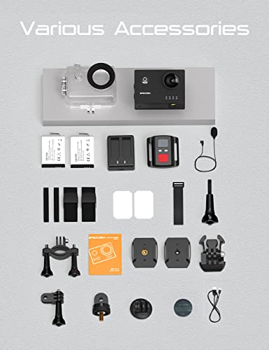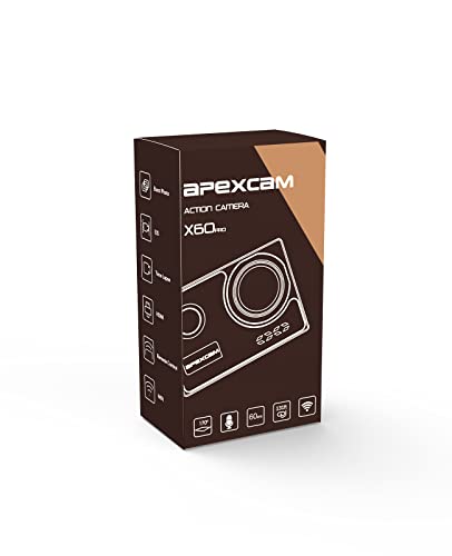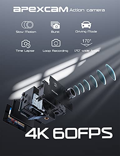 Apexcam 4K 60FPS Cámara Deportiva 20MP WiFi Cámara subacuática EIS Impermeable 40M Action Camera Remoto Lapso de Tiempo Micrófono Externo 2 baterías de 1350mAh
