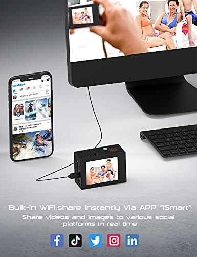 - 【Video Ultra HD 4K 60FPS e Imagen de 20 MP e IP Spantalla】: La cámara deportiva profesional 4K ultra HD, graba videos a 4K / 60fps y toma fotos de 20MP. También proporciona 4K 60fps / 4K 30fps / 1080P 120fps / 1080P 60fps / 720P 240fps. Usando IPS-Panel, puede obtener mejores colores.