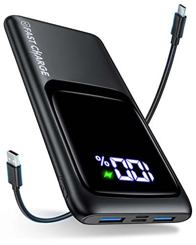 Bessline Bateria Externa 10000mAh, Ultra Delgado & Compacto Power Bank con Gran Pantalla LED, 3A USB-C Entrada/Salida & 2 USB-A Salida Cargador Portátil Compatible con iPhone 14 13 Samsung Xiaomi etc
