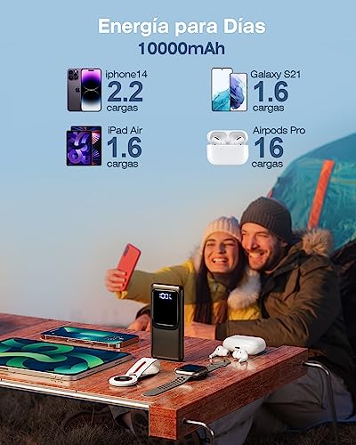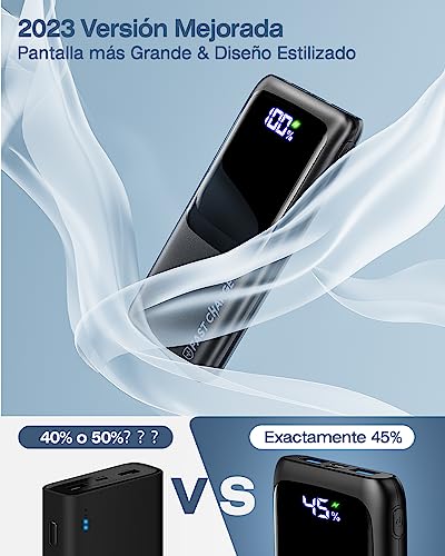 - 💡【Gran Pantalla LED + Amplia Compatibilidad】La batería externa portátil para teléfono móvil tiene incorporada una pantalla digital LED inteligente de alta precisión que muestra el porcentaje de energía restante con una precisión del 1%, para que pueda conocer el estado de la batería en cualquier momento sin adivinar si necesita cargar o no. La portable charger no sólo es adecuada para todos los teléfonos móviles del mercado, sino también para auriculares Bluetooth, smartwatches.