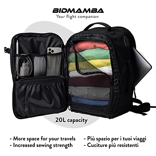 BidMamba Mochila Viaje Cabina Avion 40x20x25, Maleta 40x20x25 cm Ryanair Aprobada y Mochila 40x20x25, Diseño Elegante y Duradero para Viajeros