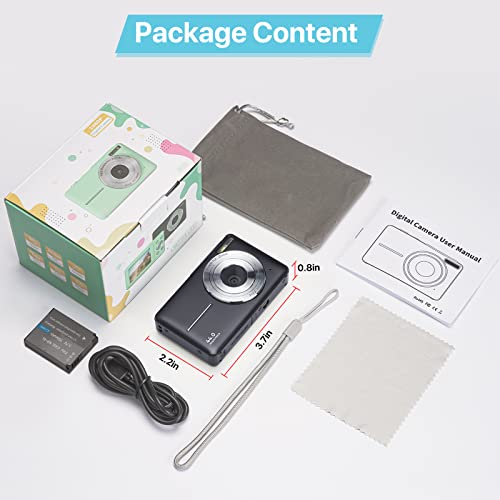 Cámara de Fotos, 1080P Cámara Digital 44MP Cámara Digital Compacta Camara Fotos Digital Recargable de 2,4 Pulgadas con Zoom Digital de 16x y 2 Pilas para Niños, Niñas y Principiantes-Negro