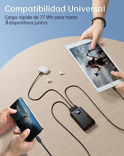 • ✅【22.5W PD & QC4.0 Fast Charge】Compatible con Power Delivery (PD) y Quick Charge (QC3.0), el pequeño banco de energía ofrece una experiencia de carga de alta velocidad sin precedentes. Tres salidas (1 tipo C y 2 USB A) de hasta 22,5 W pueden cargar 3 dispositivos al mismo tiempo, 4 veces más rápido que la carga normal. Carga rápidamente tu iPhone 12 al 50% en 30 minutos.