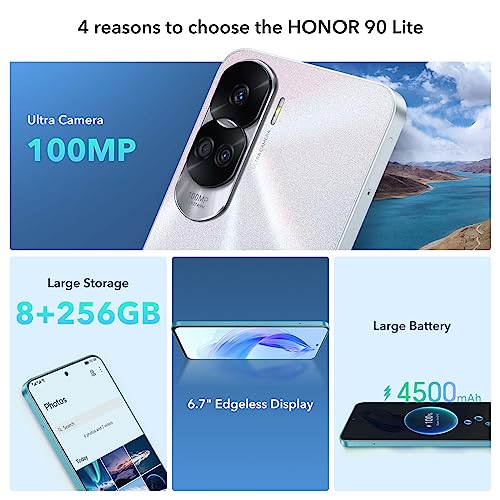 • 【4500mAh Batería, 22,5W HONOR SuperCharge】HONOR 90 LITE teléfono móvil con el 22,5W Honor SuperCharger, asegurando suficiente energía en cualquier momento y en cualquier lugar.