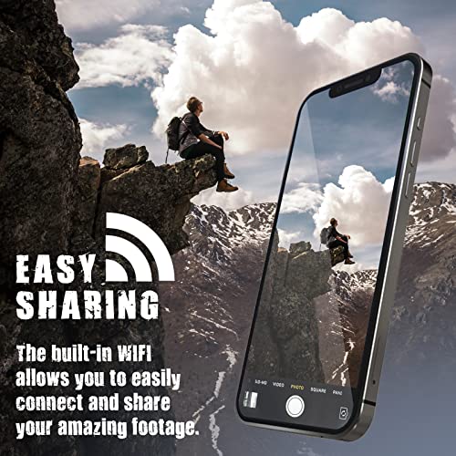 - 📲【WiFi y HDMI integrados】 Simplemente descargue la aplicación en su teléfono o tableta y conéctese a esta cámara de acción. La conectividad WiFi está entre 8 y 15 metros al aire libre, puede conectar su dispositivo inteligente de forma inalámbrica.