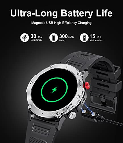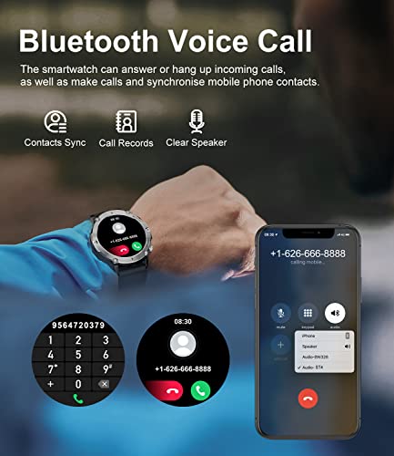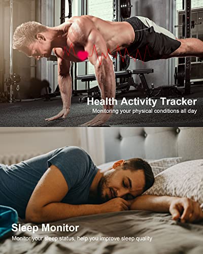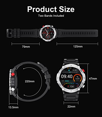 - 🚴♂️【Fitness Tracker & Useful Functions】El smartwatch militar soporta 19 modos de ejercicio: caminar, correr, escalar y fútbol, etc. El reloj compatible con iphone realiza un seguimiento preciso de la actividad a lo largo del día, como los pasos, la distancia y las calorías. También dispone de función de recordatorio de sedentarismo, cámara remota y función de localizador de teléfono para satisfacer sus distintas necesidades y hacer su vida y su trabajo más agradables.