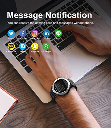 - 📱【Transmite información en tiempo real a tu muñeca】El smartwatch con función de texto y llamada se conecta a través de Bluetooth 5.0 a teléfonos iOS 10.0 y Android 6.0 compatibles con marcación y llamadas Bluetooth, y recibe notificaciones de calendario, tiempo y SNS (Facebook, Instagram, Twitter y WhatsApp, etc.). Esto es muy útil cuando no puedes sacar el teléfono fácilmente o no quieres perderte nada importante.