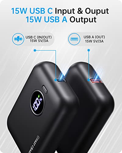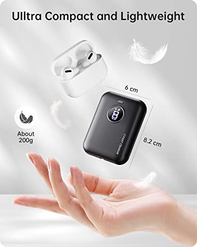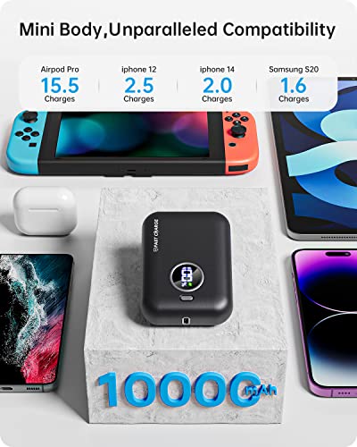 Mini Power Bank 10000mah, Bateria Externa Ultrapequeña con Pantalla LED, Bateria Portatil 3A USB-C Salida/Entrada+USB Salida, Cargador Portatil Compatible con iPhone 14 13 Samsung S23 Airpods iPad