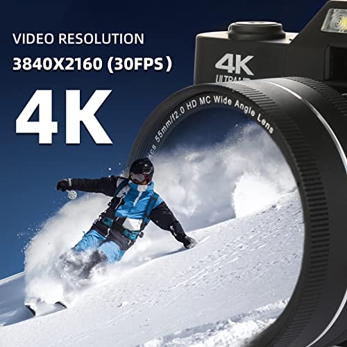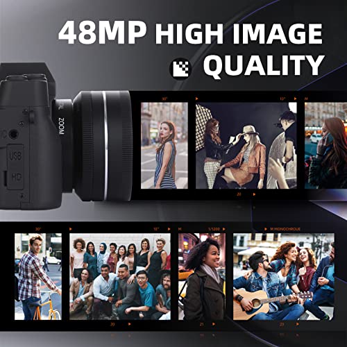 - 【Vídeo 4 K e imagen de 48 MP】 La cámara digital con vídeo 4K y resolución fotográfica de 48 MP, la cámara de vlogging soporta zoom digital 16X, pausa de vídeo, grabación durante la carga, grabación en bucle, disparo continuo, grabación silencioso, disparador automático. Con el último chip actualizado para garantizar imágenes de la cámara más de alta definición, más realistas.
