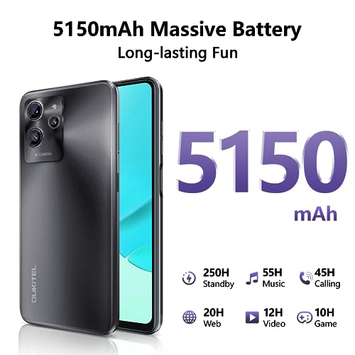 - 🔋【Gran Batería de 5150mAh y OTG】: ¡Diversión sin fin durante todo el día y toda la noche! OUKITEL C32 PRO móvil barato tiene una capacidad de 5150mAh, brinda 250 horas de tiempo en espera, 45 horas de conversación, 55 horas de música, 12 horas de video. Además, el celulares ofertas admite carga rápida de 10W, lo que lo hace más conveniente y ahorra tiempo. También es compatible con OTG, para que puedas cargar otros dispositivos en tiempos de crisis.