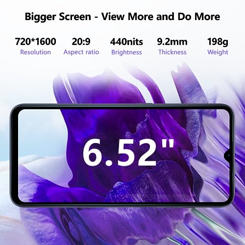 - 📱【6.52» HD+ Pantalla & 9.2mm Super Slim】La resolución del móviles ofertas de 6.52 pulgadas alcanza los 720*1600, relación de aspecto 20:9. Contraste de color y resolución de pantalla excelentes para una imagen más natural y hermosa. El diseño delgado de una sola pieza de 9.2mm pesa solo 198 gramos, liberando sus manos y haciéndolo más cómodo de sostener.