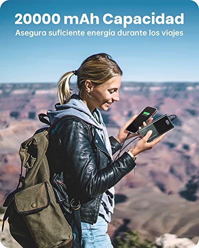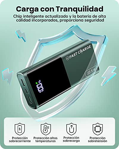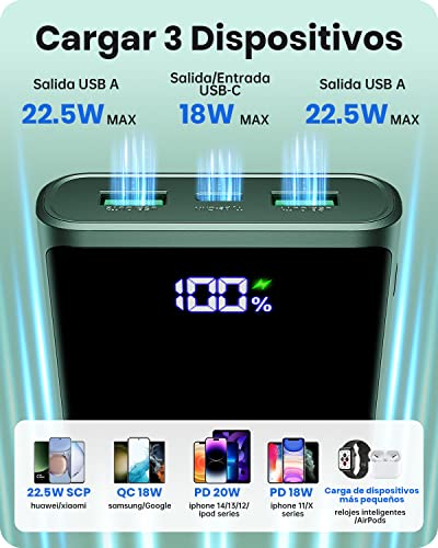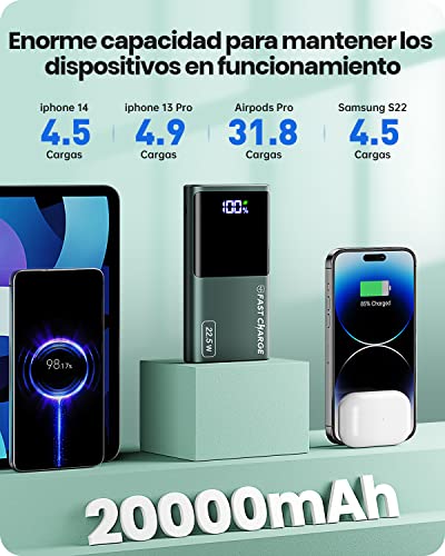 Power Bank, 22.5W Bateria Externa Carga Rapida 20000mAh, Bateria Portatil PD3.0 QC4.0 con Pantalla LED, USB C Salida & Entrada y 2 USB Salida, Cargador Portatil Compatible con iPhone 14 Samsung Airpod