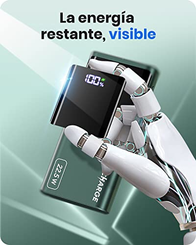 - 👉 𝐍𝐢𝐯𝐞𝐥 𝐝𝐞 𝐜𝐚𝐫𝐠𝐚 𝐫𝐞𝐬𝐭𝐚𝐧𝐭𝐞, 𝐜𝐥𝐚𝐫𝐚𝐦𝐞𝐧𝐭𝐞 𝐯𝐢𝐬𝐢𝐛𝐥𝐞: A pesar de la gran capacidad de la batería, todavía necesita ser claramente visible. Con un indicador LED claro del nivel de carga de la batería, con una precisión del 1%, puedes ver exactamente cuánta energía le queda a la batería en cualquier momento, para mayor tranquilidad cuando viajas o estás fuera de casa.