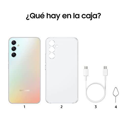 SAMSUNG Galaxy A34 5G (256GB, 8 GB de RAM) + Funda – Smartphone Android Color Plata, Pantalla Super AMOLED de 6,6 Pulgadas, Batería de 5000 mAh. Exclusivo Amazon (Versión española)