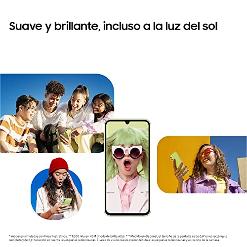 - La pantalla Super AMOLED de 1000 nits del Galaxy A34 5G garantiza una visión clara incluso en exteriores. Las frecuencias de refresco de hasta 120 Hz permiten ver tu contenido de forma fluida en la impresionante pantalla de 6,6 pulgadas.