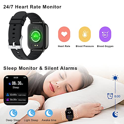Smartwatch, 1.69″ Reloj Inteligente Hombre Mujer, Pulsómetro, Monitor de Sueño, Pulsera Actividad Inteligente Impermeable IP68 con Podómetro, SpO2, 24 Modos Deporte, Reloj Deportivo para iOS Android