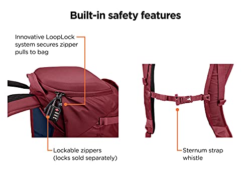 • Disuade el robo con los innovadores LoopLocks asegurando los tiradores de cremallera a la bolsa. Los tiradores de cremallera dobles también se pueden bloquear (los cierres TSA se venden por separado)